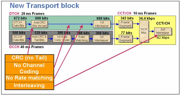 图4  为 33.6 kbps RMC改进的DTCH帧 这一信道设置有效地去除了系统中的纠错编码,同时也把数据率从12.2kbps增加到33.6kbps,从而实现更快的BER测试。这一误码结果还有助于更精确地评估UE的实际RF和解调性能。当把BER与基于12.2 kbps RMC的测量比较时,就也能评估信道的编码增益。