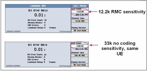 图5  测量BER的典型装置,结果基于12.2 kbps 和 33.6 kbps RMC